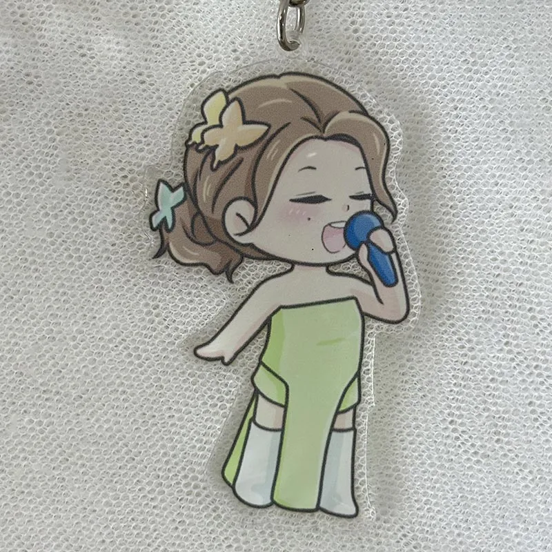 Flache Acryl -Schlüsselanhänger sind der häufigste Stil. Ihre Formen sind in der Regel einfach und geeignet, um Avatare, ikonische Muster oder Logos verschiedener Anime -Charaktere usw. zu erstellen. Aufgrund ihrer geringen Produktionskosten eignen sich sie für die Massenproduktion.